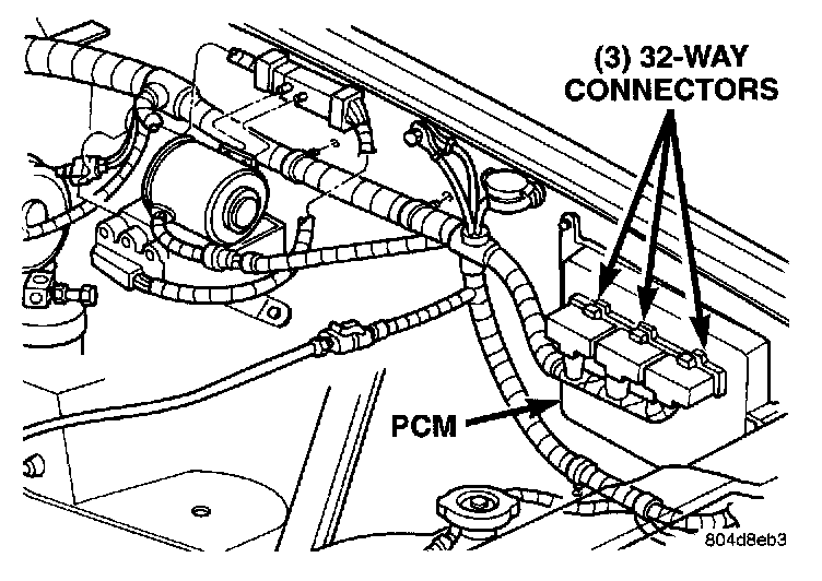 3. Check pin connectors in the PCM and the three 32-way connectors for corrosion or damage. Also, the pin heights in connectors should all be same. Repair as necessary before installing connectors.