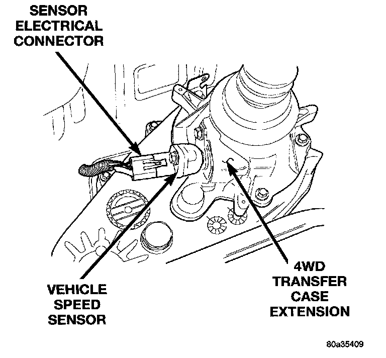 The vehicle speed sensor is located on the speedometer pinion gear adapter. The pinion gear adapter is located on the extension housing of transmission (drivers side).
