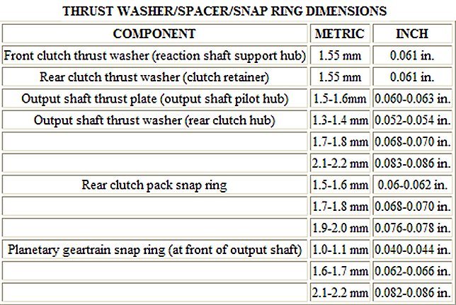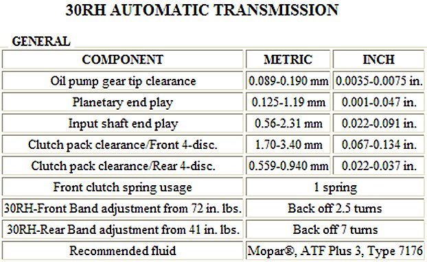 30RH Automatic Transmission Specifications