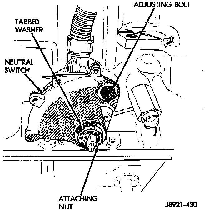 3. Install switch on manual valve shaft and install switch adjusting bolt finger tight. Do not tighten bolt at this time.