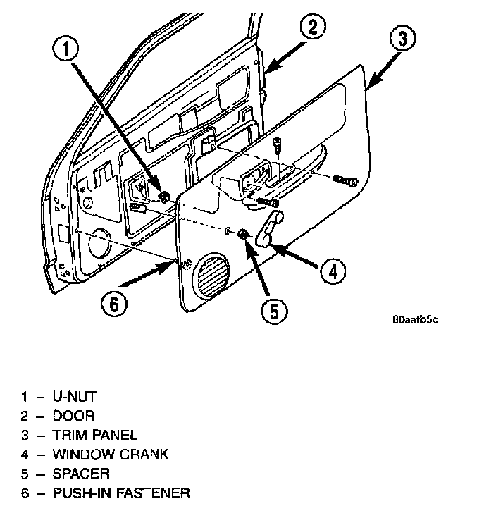 2. If the vehicle is so equipped, remove the manual window regulator crank handle with a removal tool.