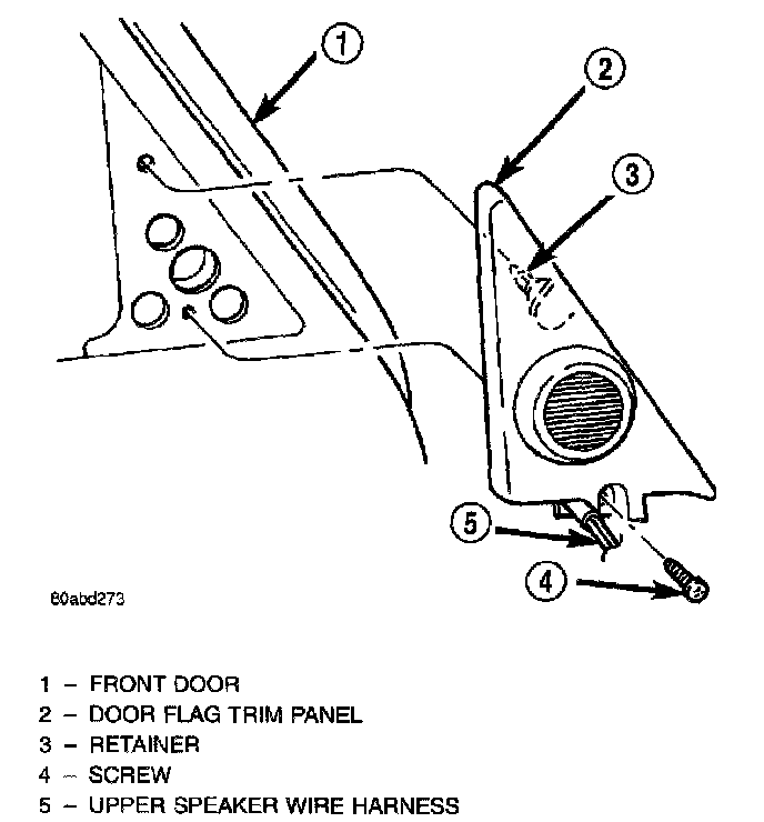 10. Remove the one screw that secures the front door flag trim to the inner door panel.