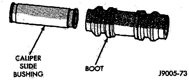 7. Remove caliper mounting bolt bushings and boots.