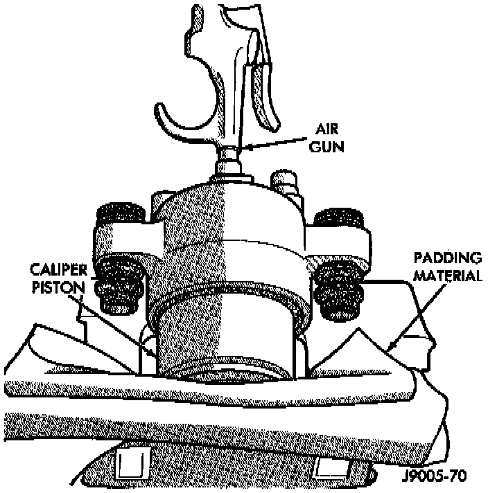 CAUTION: Do not blow the piston out of the bore with sustained air pressure. This could result in a cracked piston. Use only enough air pressure to ease the piston out.