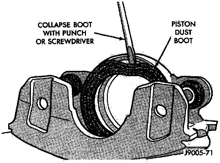 5. Remove caliper piston dust boot with suitable pry tool.