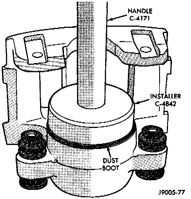 8. Seat dust boot in caliper with Installer Tool C-4842 and Tool Handle C-4171.