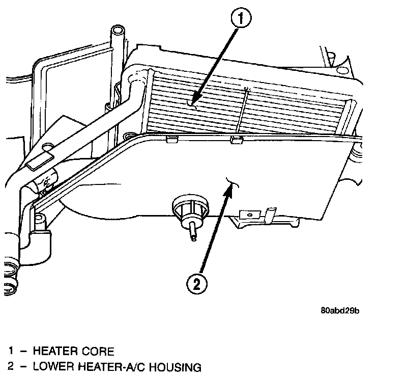 2. Lift the heater core out of the lower half of the heater-A/C housing.
