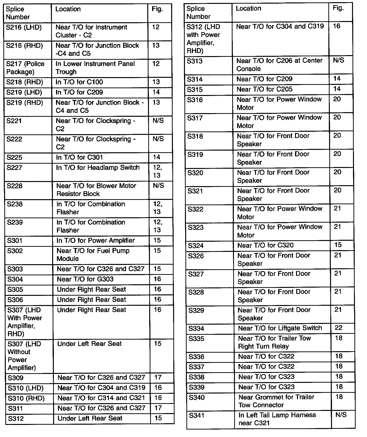 Splice Locations Component Index (Part 3 Of 4):