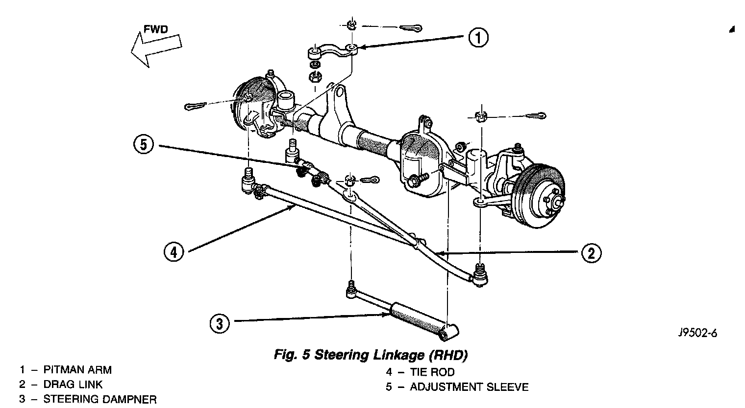 NOTE: Once the toe setting is correct, the steering wheel can be re-centered by adjusting only the drag link.