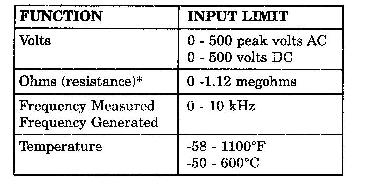 *Ohms cannot be measured if voltage is present. Ohms can be measured only in a non-powered circuit.