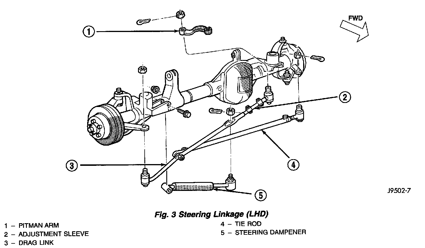 NOTE: Once the toe setting is correct, the steering wheel can be re-centered by adjusting only the drag link.