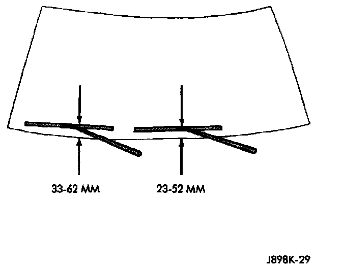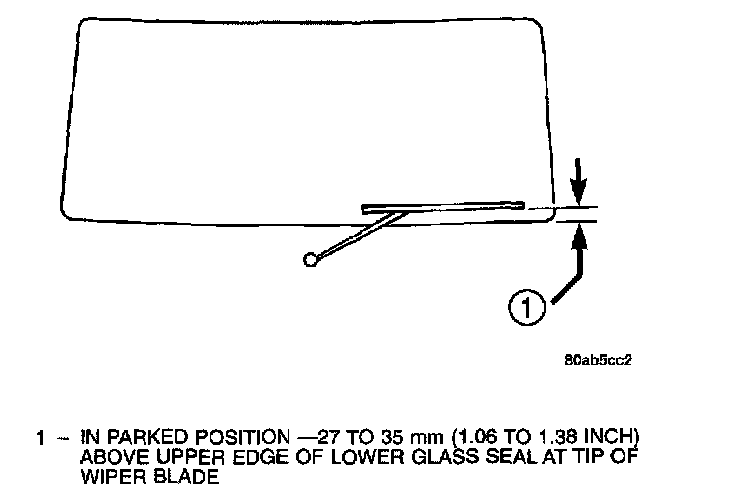 6. The measurement from the tip of the blade should now be from 27 to 35 mm (1.06 to 1.38 inch) above the upper edge of the lower liftgate glass seal. Check for the correct wiper arm positioning and readjust if required.