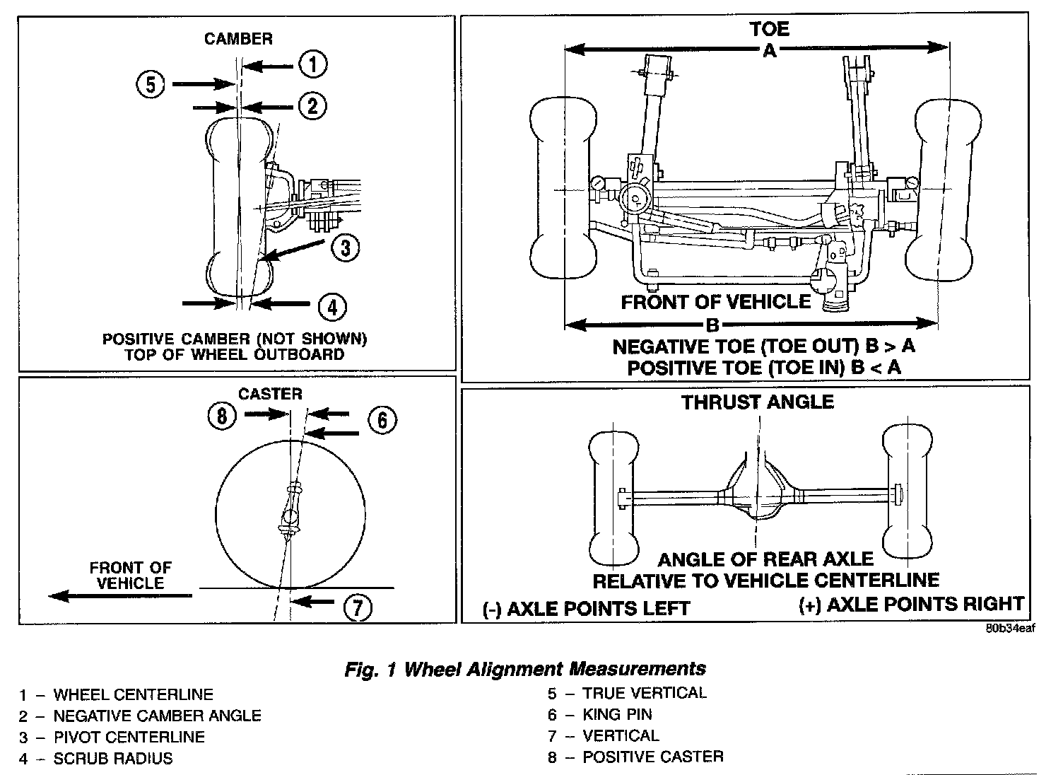 - THRUST ANGLE is the angle of the rear axle relative to the centerline of the vehicle. Incorrect thrust angle can cause off-center steering and excessive tire wear. This angle is not adjustable, damaged component(s) must be replaced to correct the thrust angle.