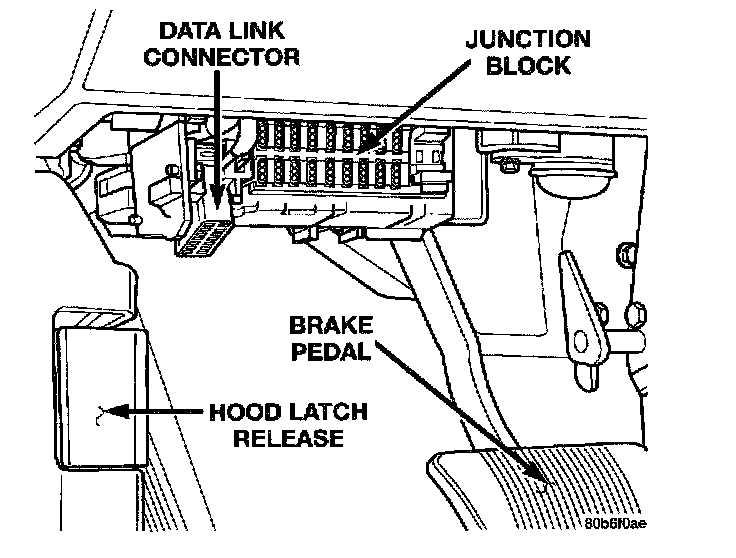 The data link connector is located at the lower edge of the instrument panel near the steering column.