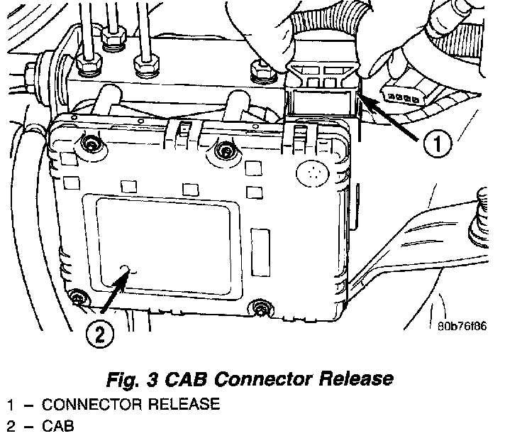 3. Install CAB harness connector and push down connector release.