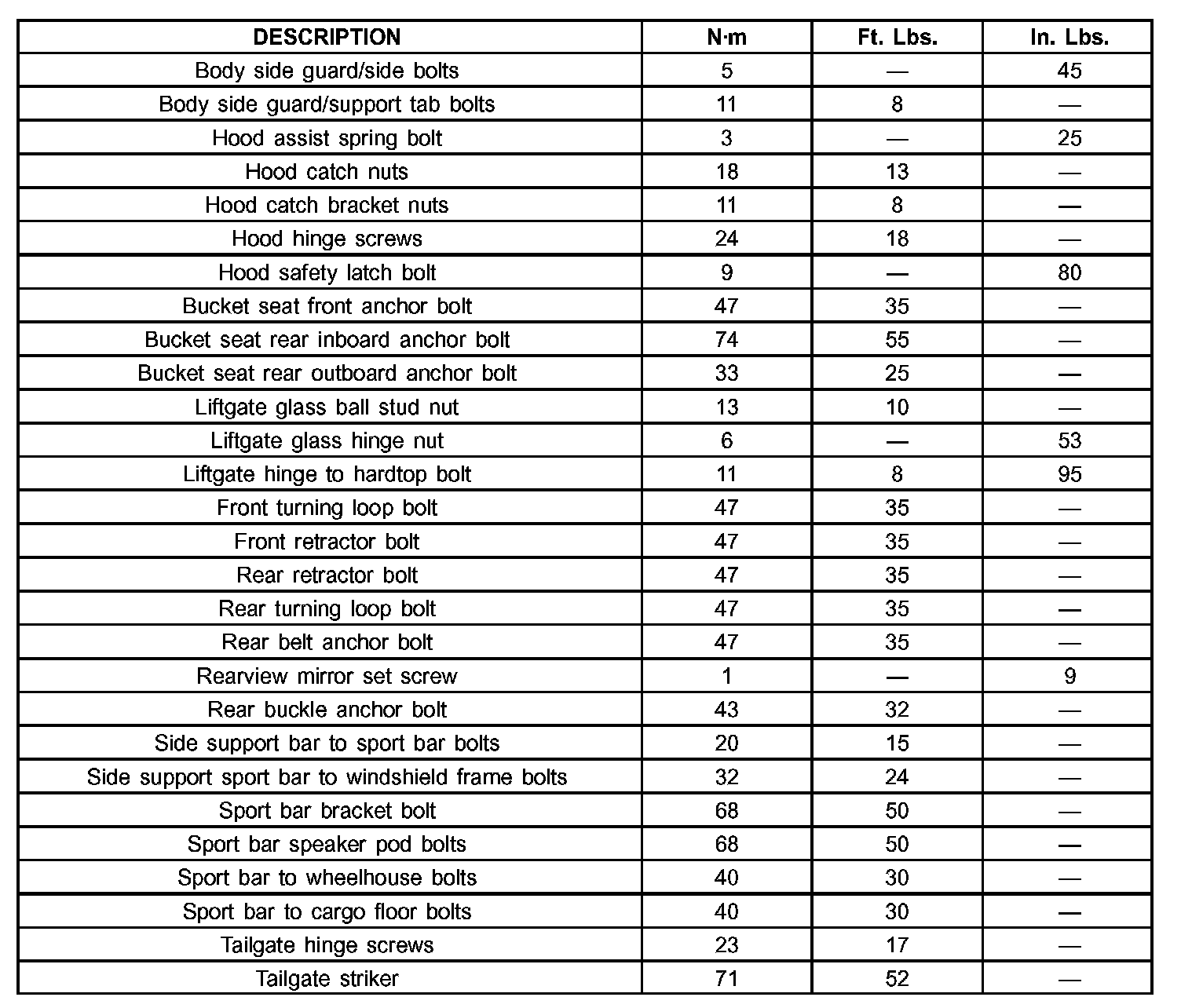 TORQUE SPECIFICATIONS