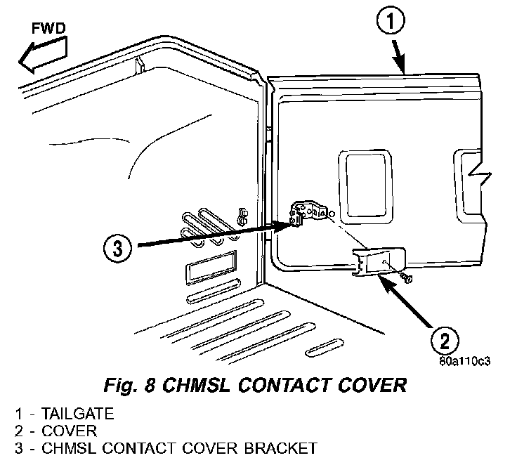 2. Open the tailgate and remove the center high mounted stop lamp (CHMSL) contact cover (Fig. 8).