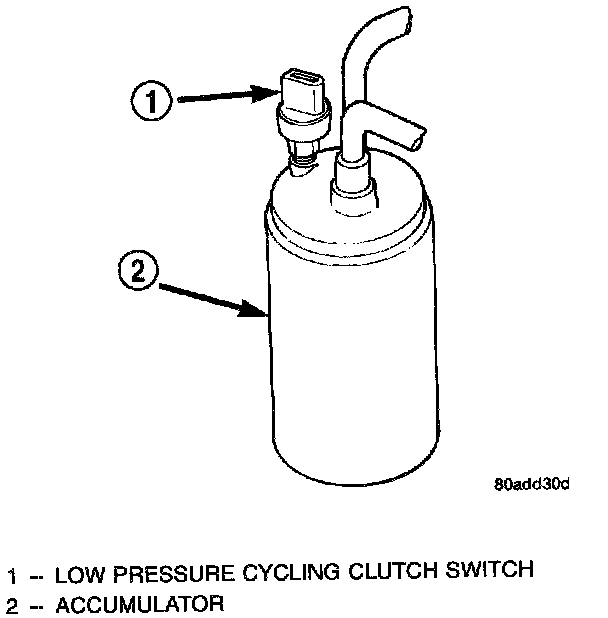 The low pressure cycling clutch switch is located on the top of the accumulator.