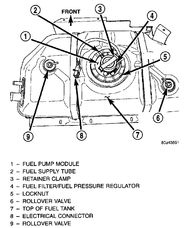 The combination fuel filter and fuel pressure regulator is located on the top of fuel pump module.