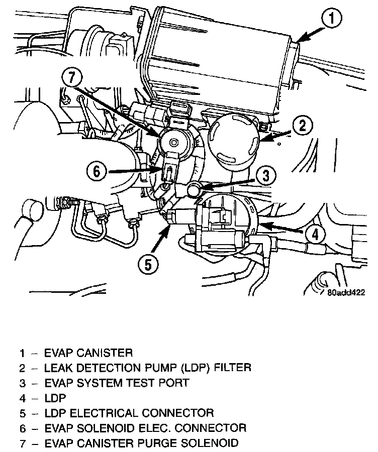 EVAP Canister, EVAP Canister Purge Solenoid And LDP Location: