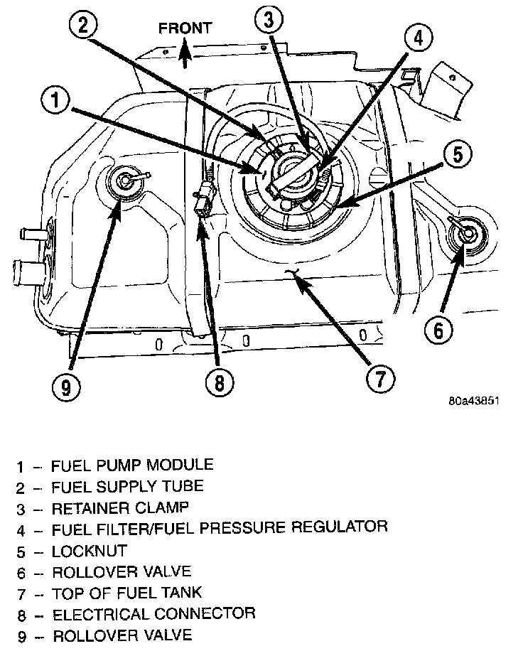 The rollover valves will prevent fuel flow through the fuel tank vent (EVAP) hoses in the event of an accidental vehicle rollover. The EVAP canister draws fuel vapors from the fuel tank through these valves. The valves are not serviceable. If replacement is necessary, the fuel tank must be replaced.