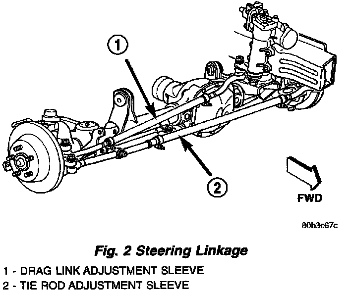 3. Loosen the tie rod adjustment sleeve clamp bolts .