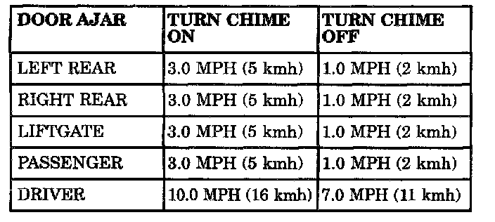 When the following messages are displayed the EVIC will send a chime request to the BCM. The BCM will respond with a series of chimes.