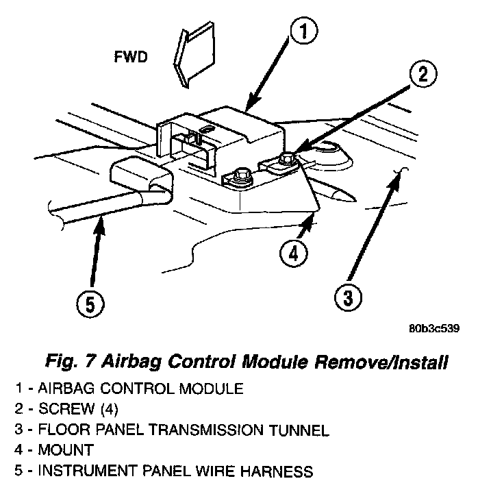 - THE AIRBAG CONTROL MODULE CONTAINS THE IMPACT SENSOR, WHICH ENABLES THE SYSTEM TO DEPLOY THE AIRBAGS. NEVER STRIKE OR KICK THE AIRBAG CONTROL MODULE, AS IT CAN DAMAGE THE IMPACT SENSOR OR EFFECT ITS CALIBRATION. IF AN AIRBAG CONTROL MODULE IS ACCIDENTALLY DROPPED DURING SERVICE, THE MODULE MUST BE SCRAPPED AND REPLACED WITH A NEW UNIT. FAILURE TO OBSERVE THIS WARNING COULD RESULT IN ACCIDENTAL, INCOMPLETE, OR IMPROPER AIRBAG DEPLOYMENT AND POSSIBLE OCCUPANT INJURIES.