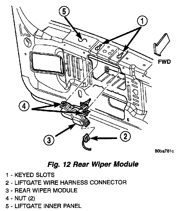 - Bracket - The rear wiper module bracket consists of a stamped steel mounting plate for the wiper motor that is secured with screws to the wiper motor and to the liftgate inner panel.