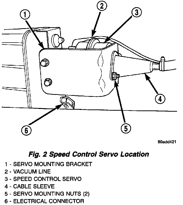4. Disconnect servo cable at throttle body. Refer to Cable Removal/Installation.