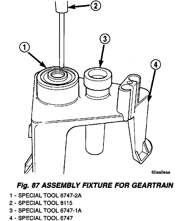 GEARTRAIN ASSEMBLY1. Install Adapter 6747-1A on input shaft hub of Fixture 6747 (Fig. 87).