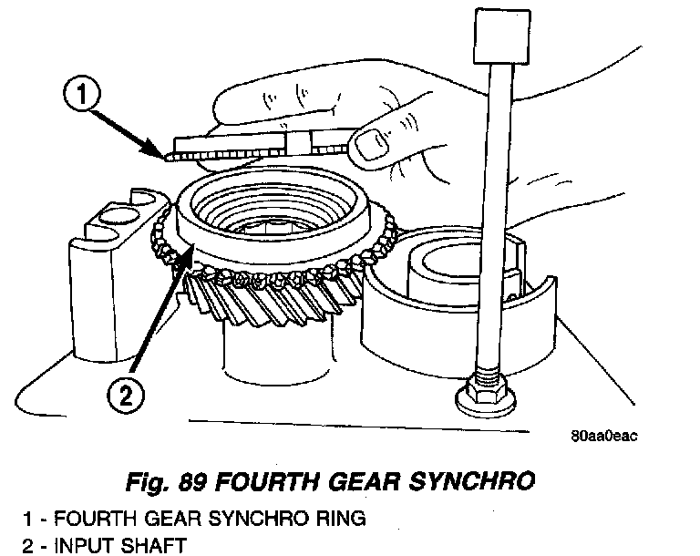 4. Install fourth gear synchro, ring on input shaft (Fig. 89).