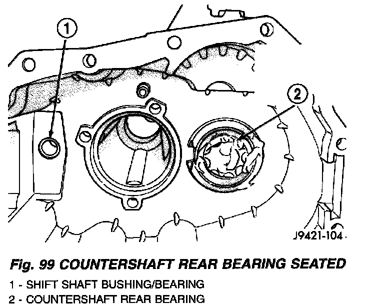 5. Install countershaft rear bearing in bearing race (Fig. 99).