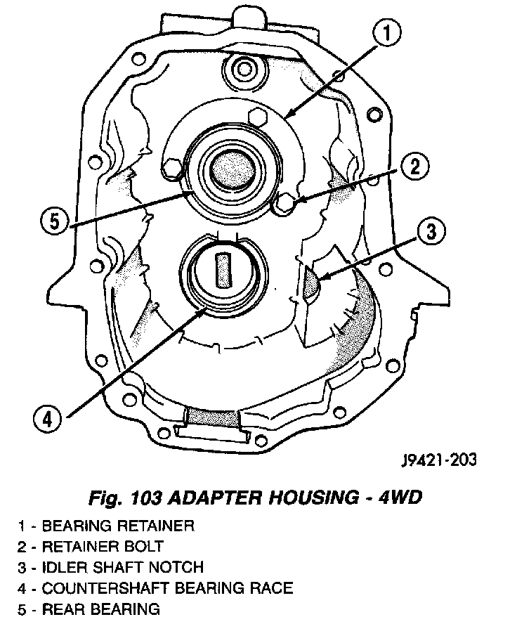 2. Position rear bearing retainer in adapter housing (Fig. 103).