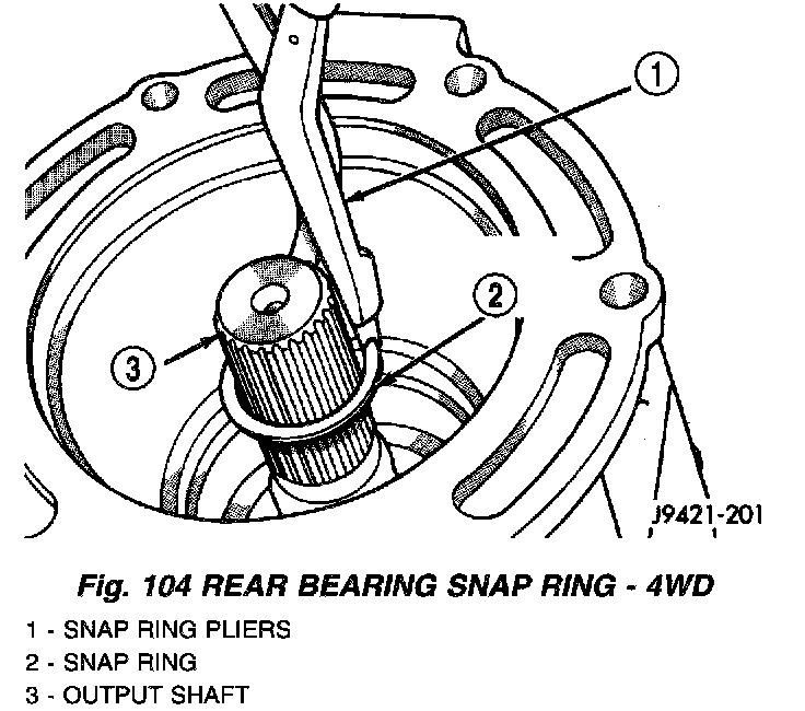 9. Install rear bearing snap ring on output shaft (Fig. 104).