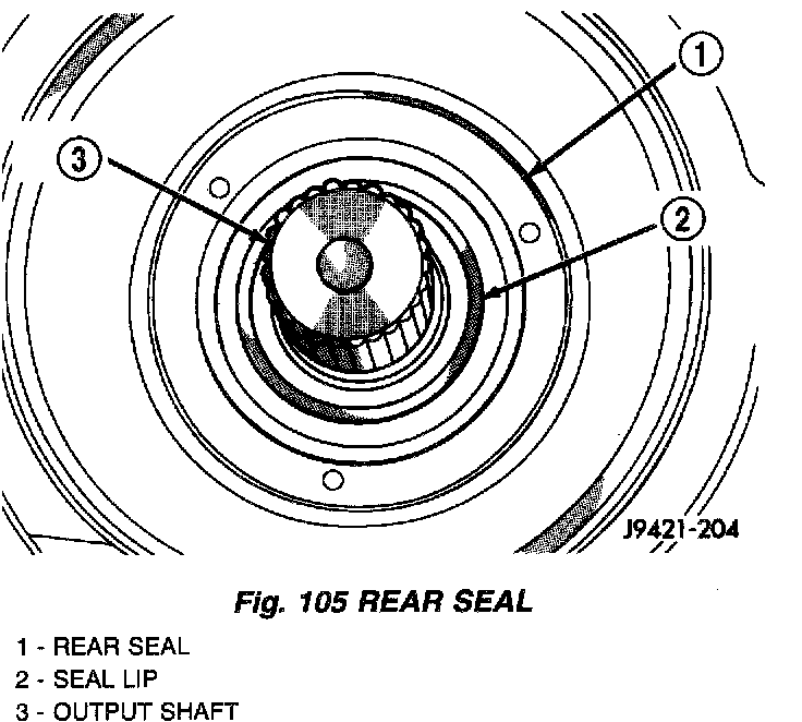 10. Lubricate lip of new rear seal (Fig. 105) with Mopar Door Ease or transmission fluid.