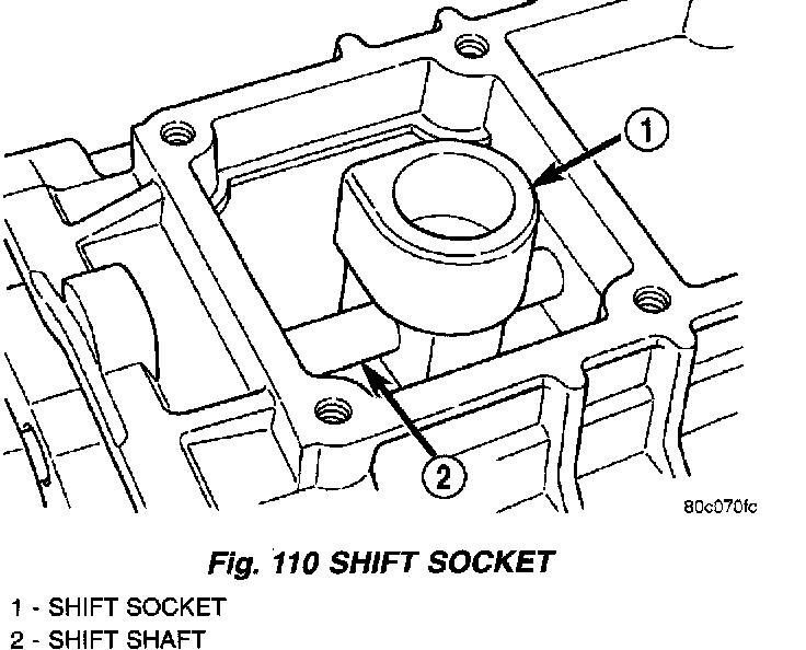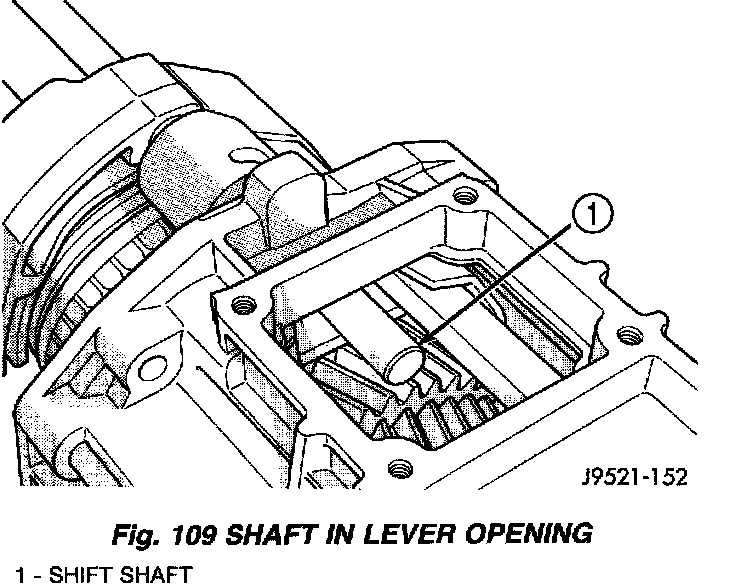 7. Align shift socket with shaft and slide shaft through socket and into shift shaft bearing in rear housing (Fig. 110).