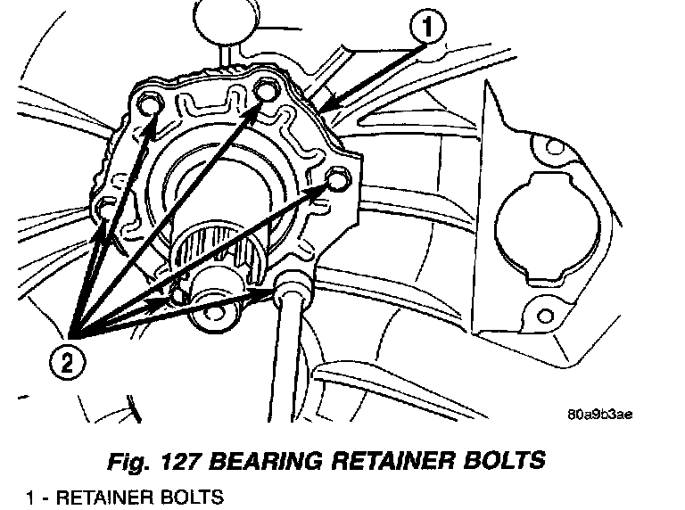 21. Align and install front bearing retainer over input shaft and onto housing mounting surface (Fig. 126). Although retainer is one-way fit on housing, be sure bolt holes are aligned before seating retainer.