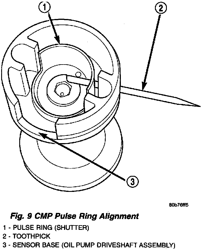 5. If engine crankshaft or camshaft has been rotated, such as during engine tear-down, CMP sensor relationship must be reestablished.