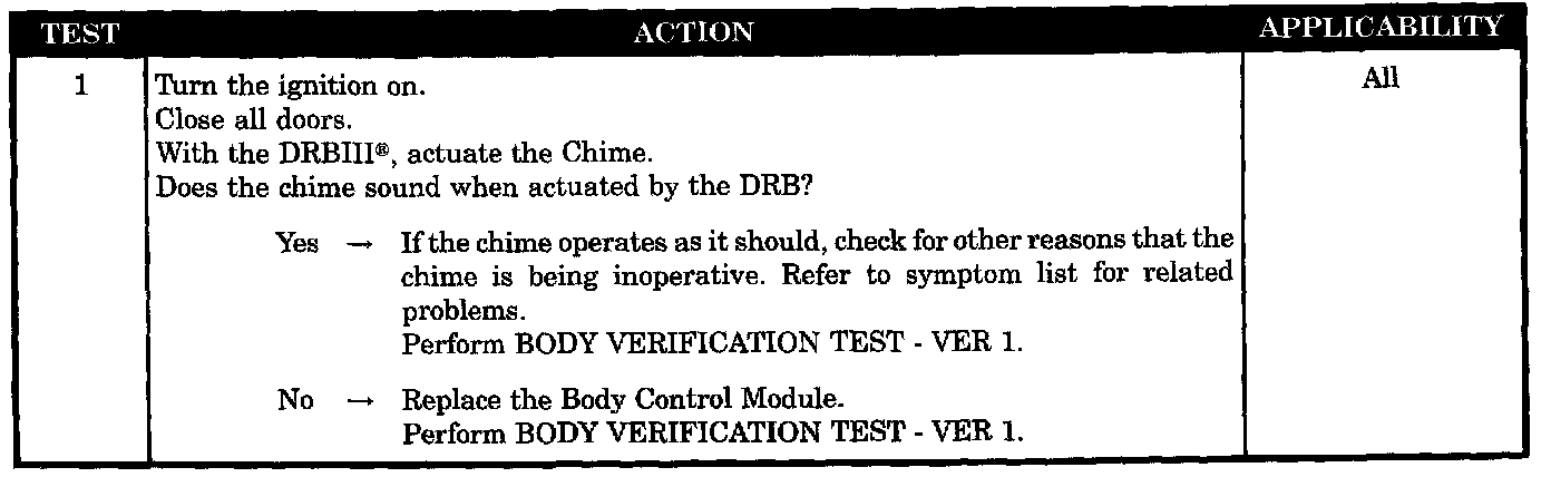 - chime inoperative
