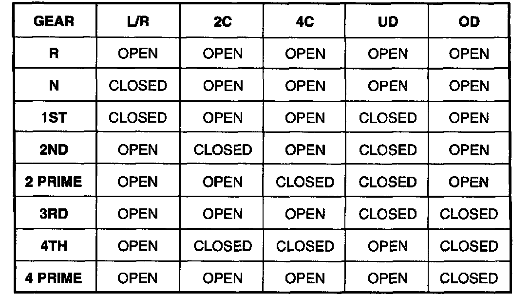 NOTE: OR PRESSURE SWITCH OPENS ABOVE 150 0UT PUT RPM IN 1ST GEAR AND CLOSES BELOW 100 OUTPUT RPM.