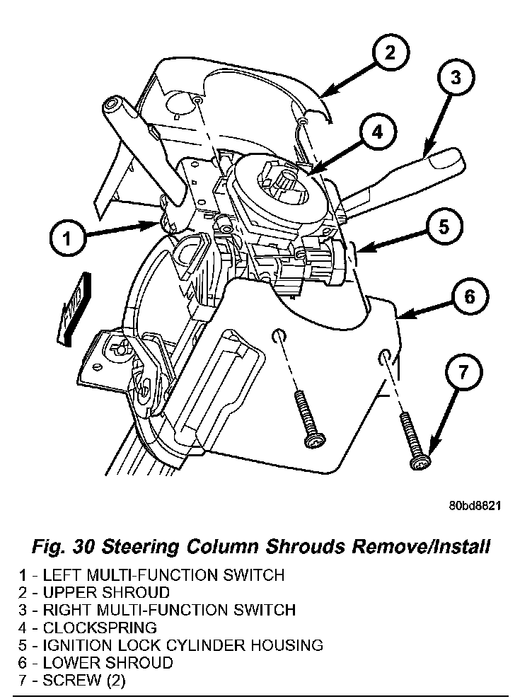 Fig. 30 Steering Column Shrouds Remove/Install: