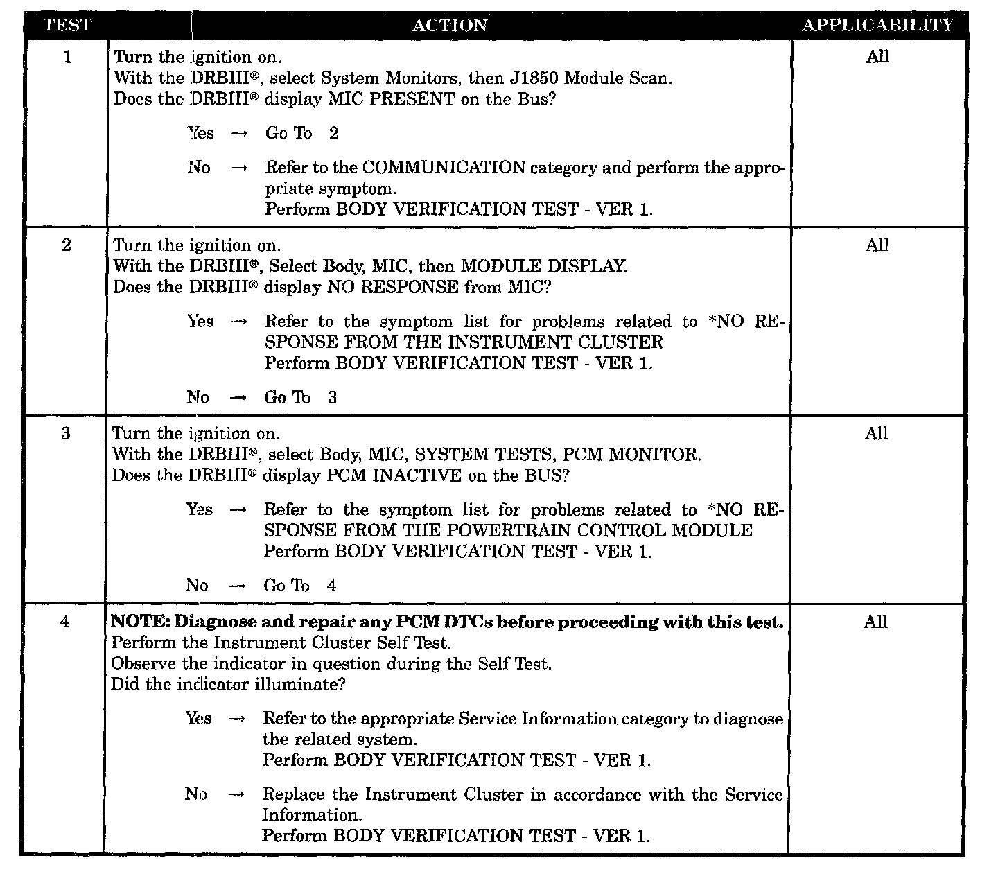 No response - instrument cluster