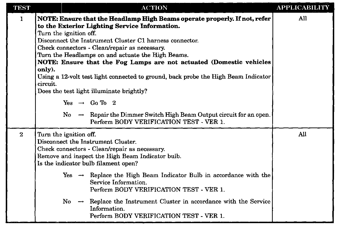 HIGH BEAM INDICATOR INOPERATIVE