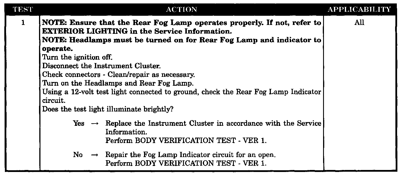 REAR FOG LAMP INDICATOR INOPERATIVE - BUX ONLY