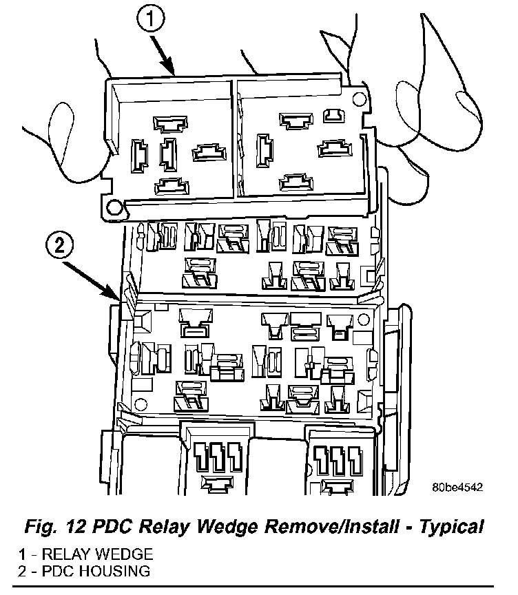 4. From the top of the PDC housing, remove the relay wedge from the PDC relay cassette (Fig. 12).