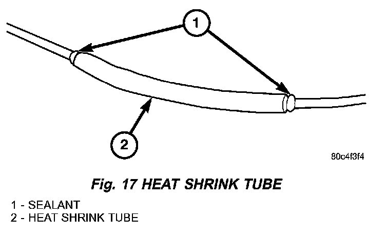 6. Center the heat shrink tubing over the joint and heat using a heat gun. Heat the joint until the tubing is tightly sealed and sealant comes out of both ends of the tubing (Fig. 17).