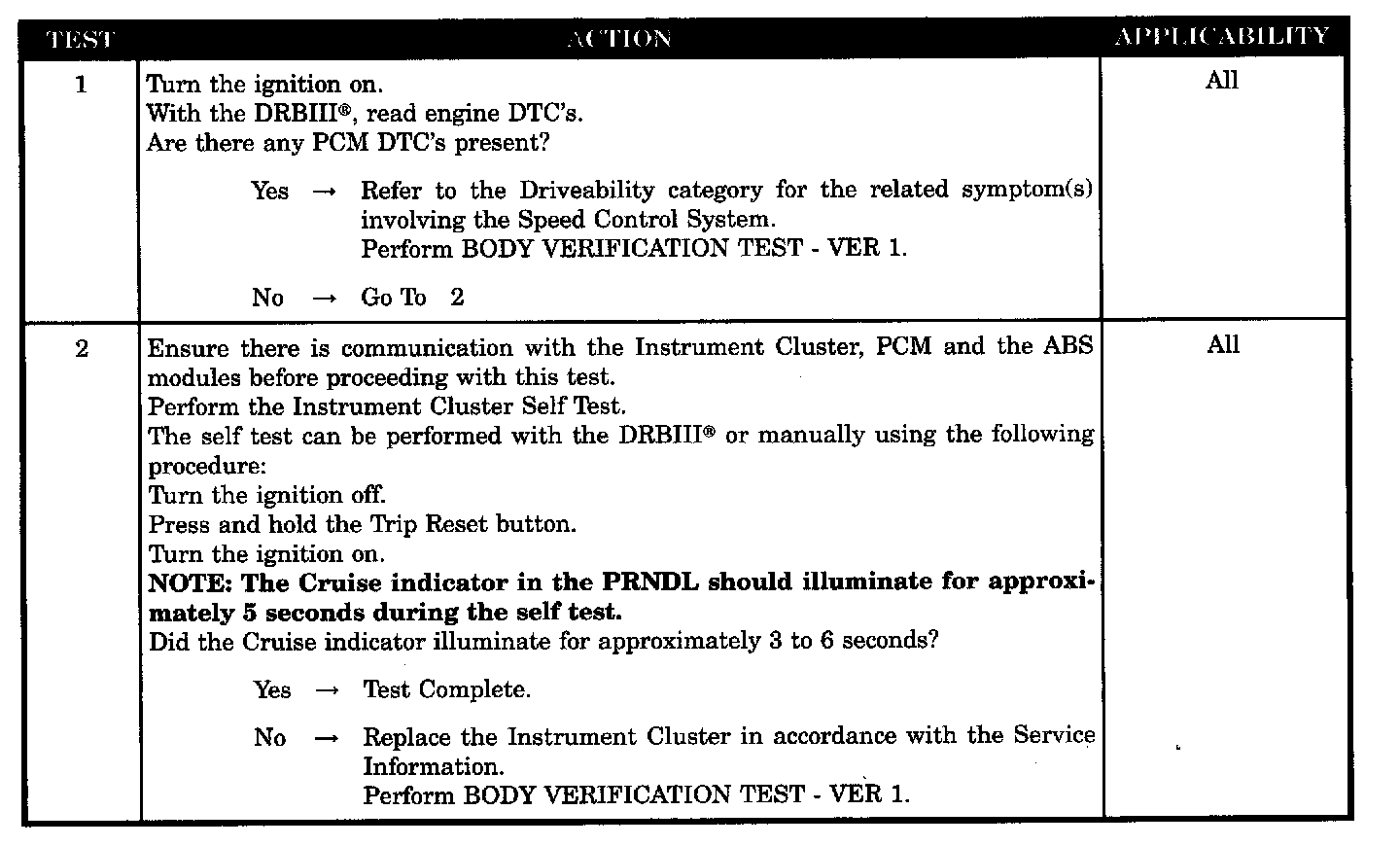 CRUISE ON INDICATOR NOT OPERATING PROPERLY