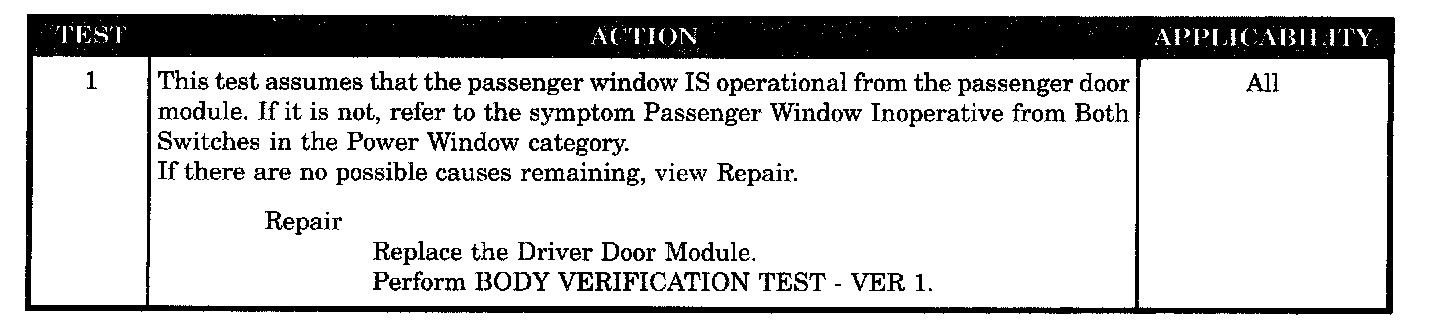 PASSENGER WINDOW INOPERATIVE FROM DDM