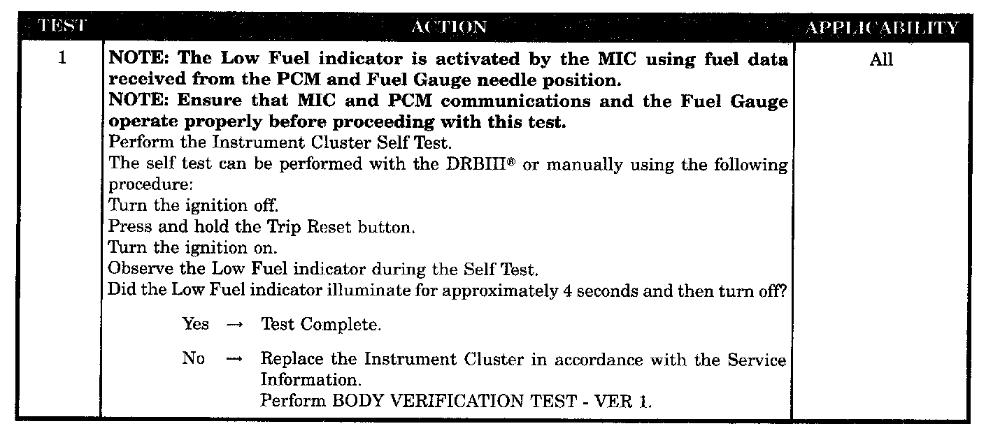 LOW FUEL INDICATOR INOPERATIVE